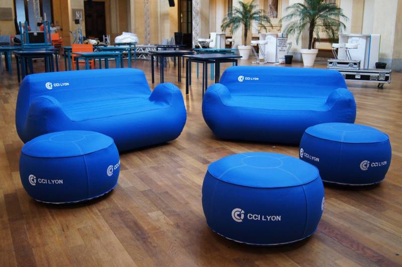 Canapé gonflable personnalisable aux couleurs de votre charte graphique