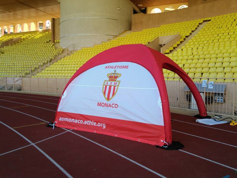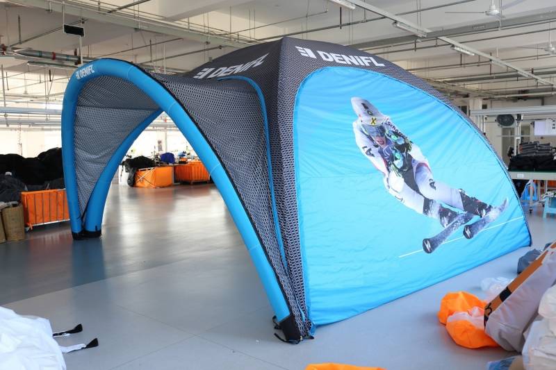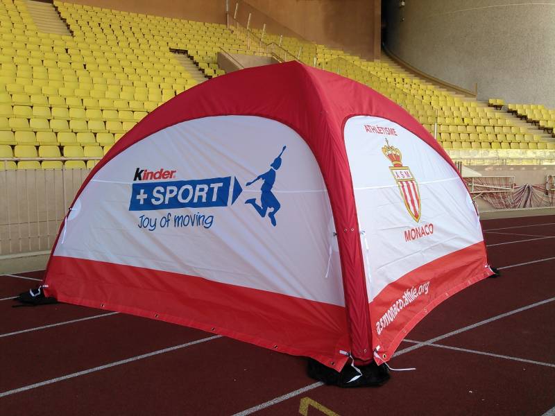 tente pliante E-Z UP Aérodome avec des parois latérales.