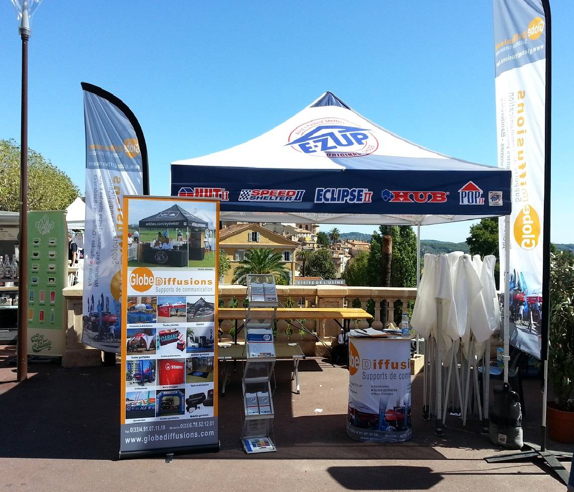 Tentes pliantes publicitaires E-Z UPVous trouverez dans notre rubrique réalisations de nombreuses photos de tentes pliantes publicitaires E-Z UP qui ont fait leurs preuves sur de nombreux évènements sportifs, culturels et commerciaux.