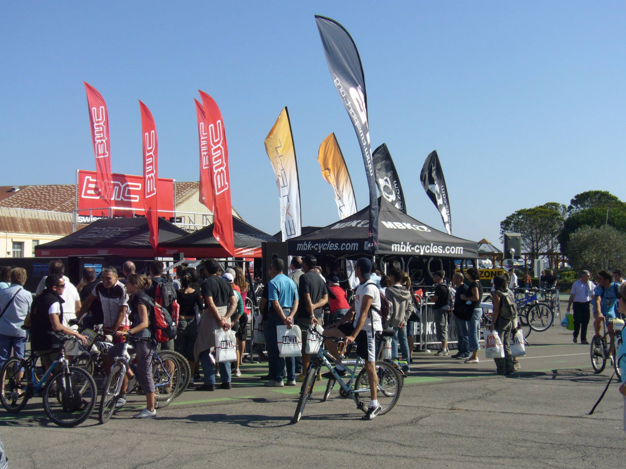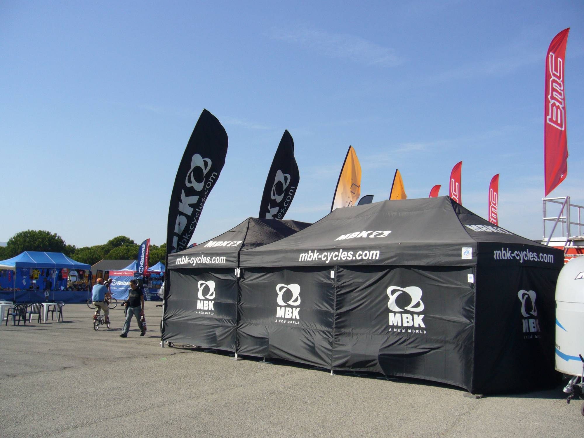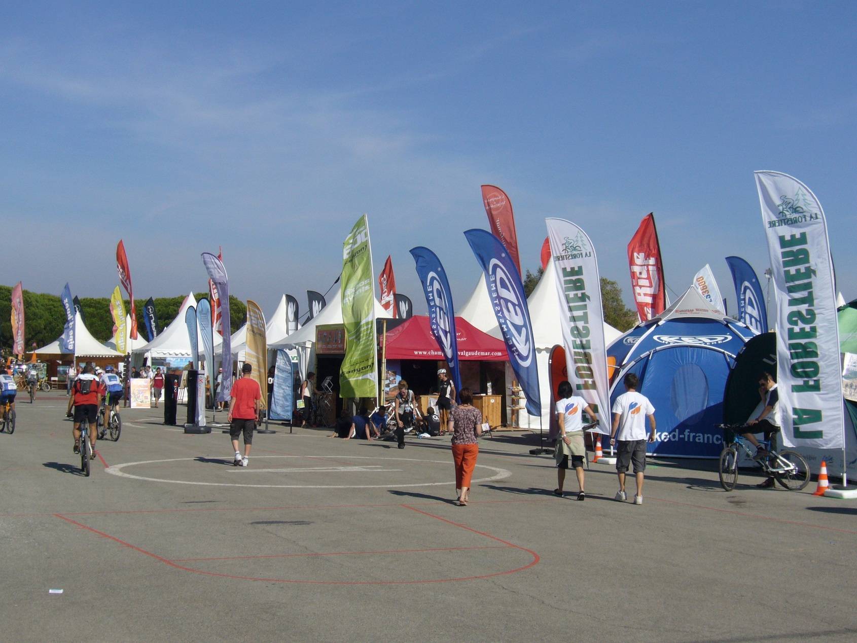 La ville de Fréjus accueille le plus grand évènement européen de vtt avec l'épreuve reine où les tentes publicitaires E-Z UP abritent équipes de compétitions et ateliers de réparation.