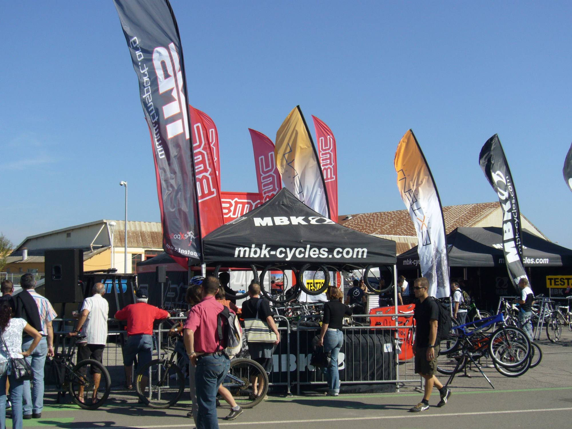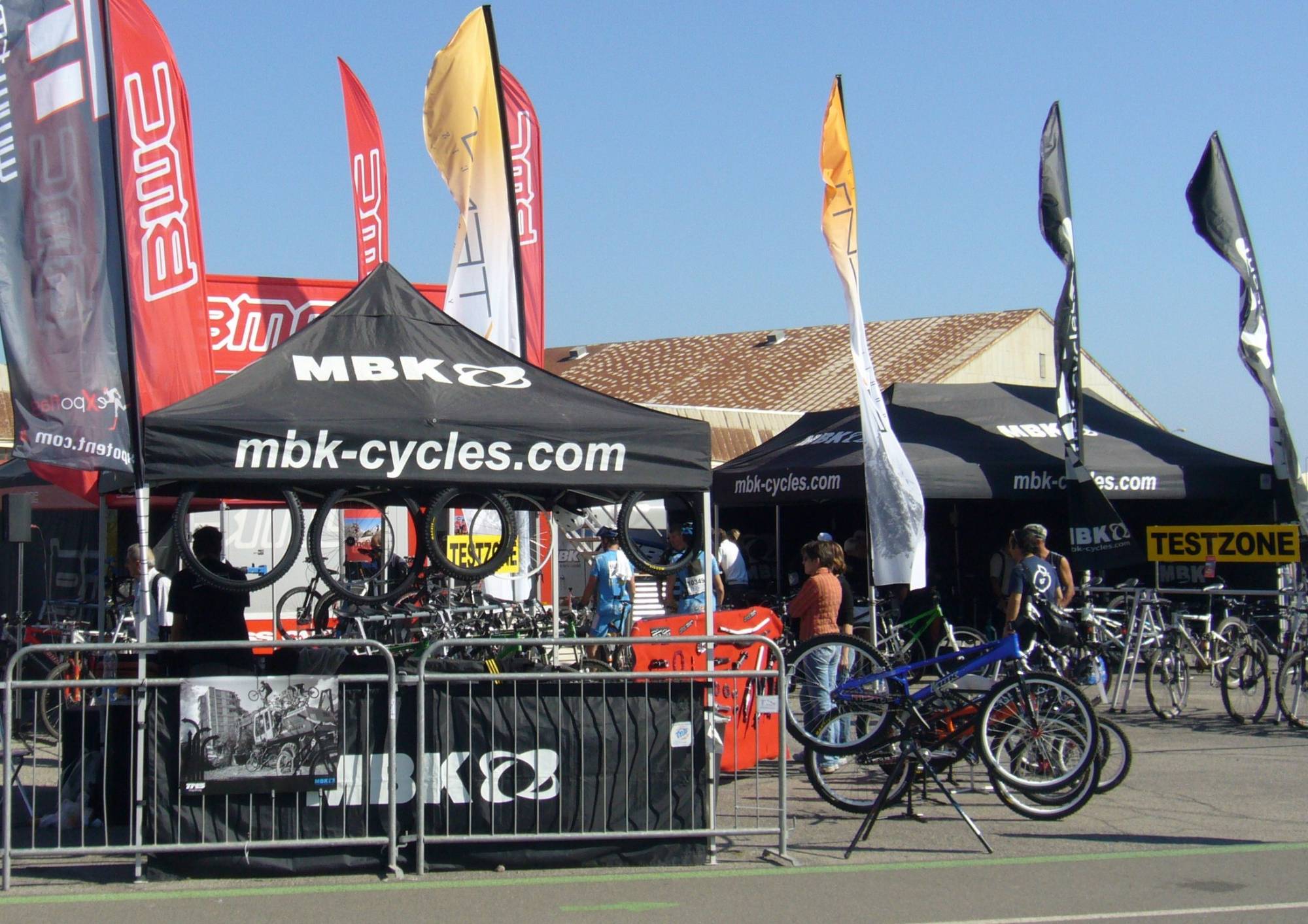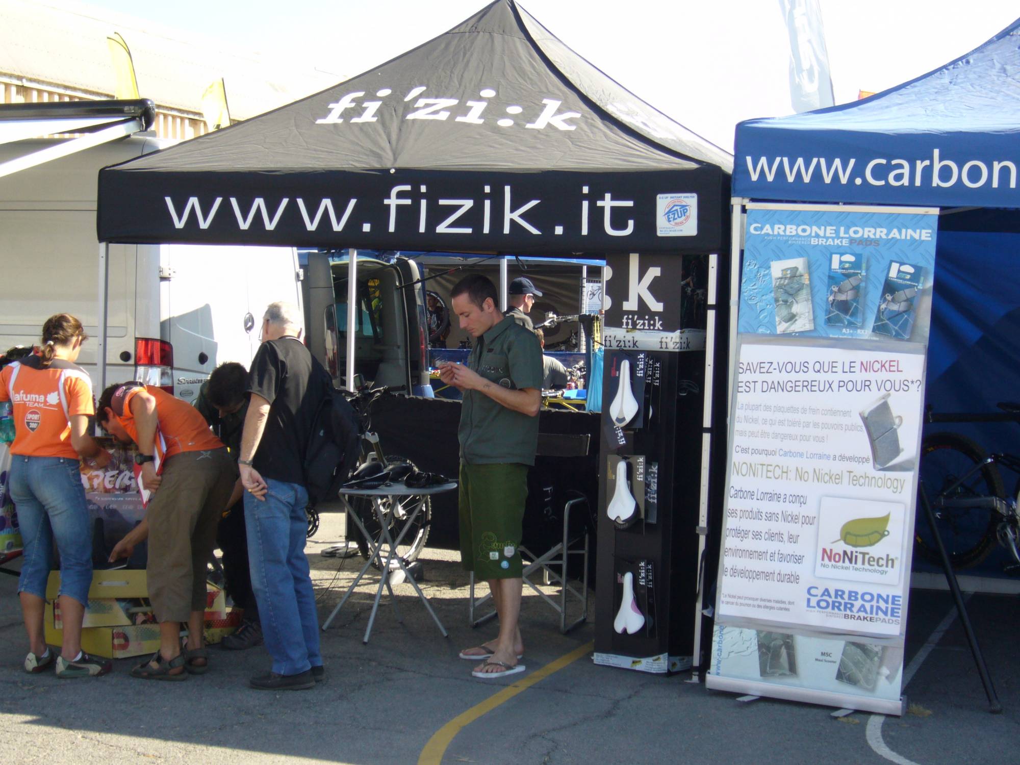 La ville de Fréjus accueille le plus grand évènement européen de vtt avec l'épreuve reine où les tentes publicitaires E-Z UP abritent équipes de compétitions et ateliers de réparation.