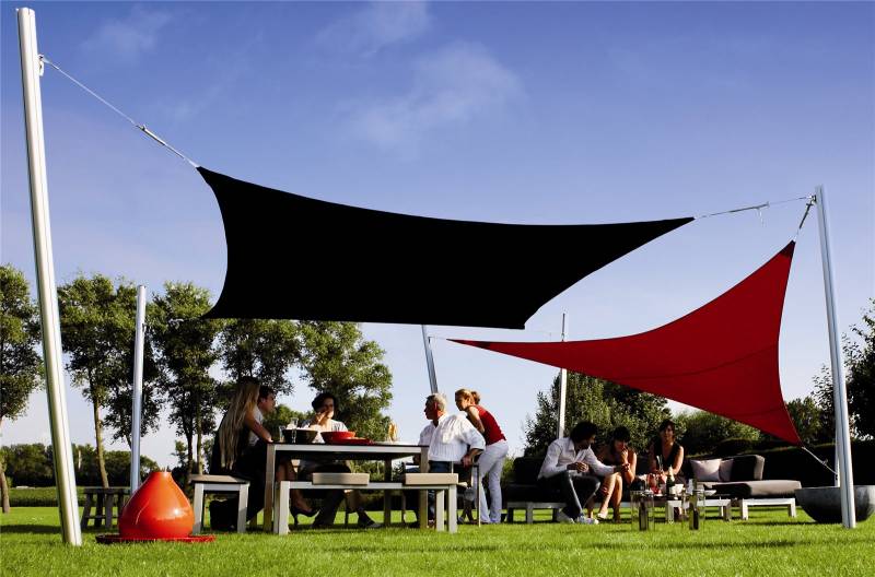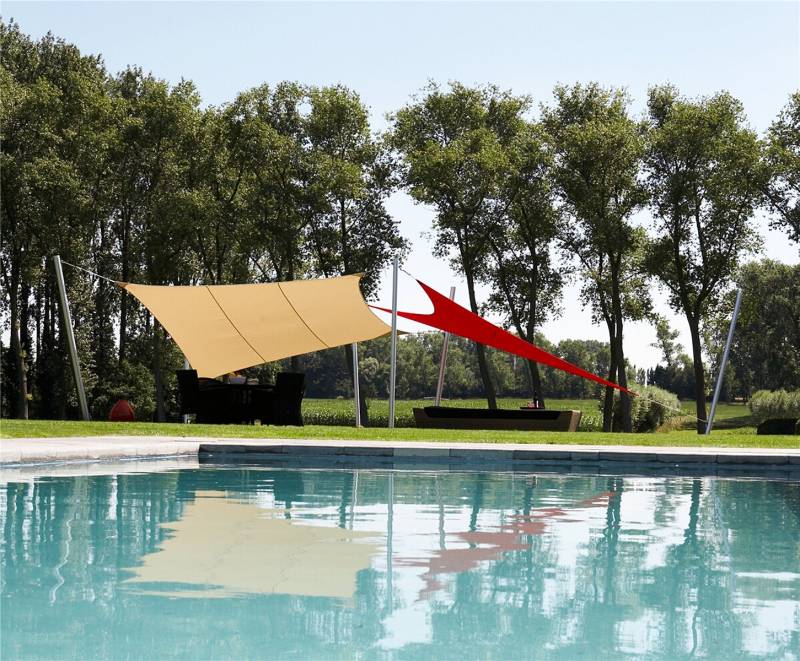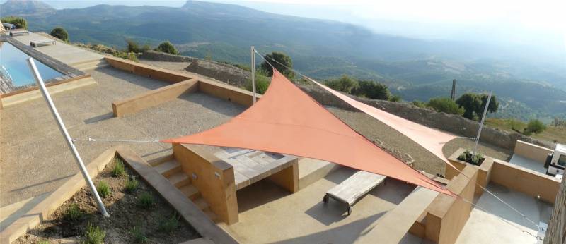 Objet de design, nos voiles d'ombrage n'en n'oublient pas moins leur vocation fonctionnelle de protection solaire.